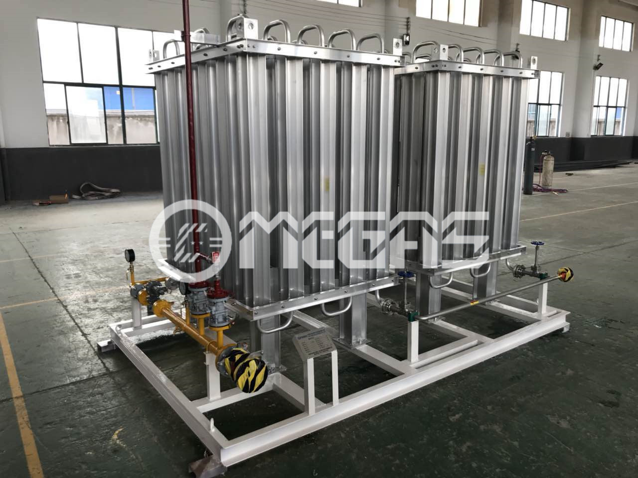 1.原理:利用集成基座在有限的空間內(nèi)將氣化設(shè)備、調(diào)壓設(shè)備、復(fù)熱設(shè)備、計(jì)量設(shè)備、加臭設(shè)備集中合理布局,減少現(xiàn)場(chǎng)氣站施工的不可控因素,給客戶(hù)使用帶來(lái)便利。